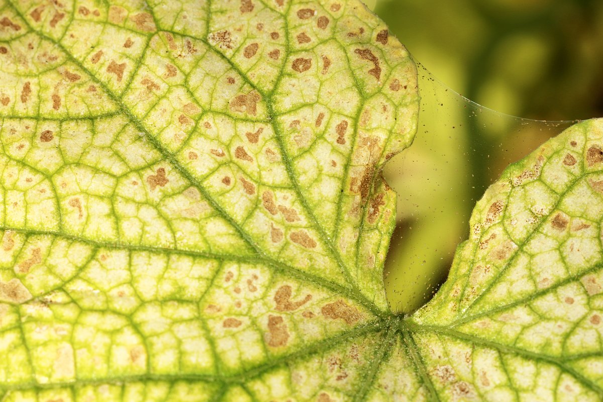 Огуречная мозаика — неизлечимое вирусное заболевание, переносимое насекомыми. Зараженные растения покрываются желтыми пятнами.