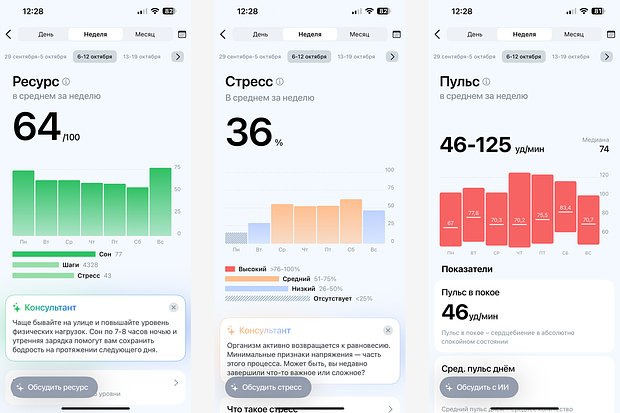 Заявленные функции реализованы на высшем уровне. Причем без каких-то дополнительных подписок — купил и сразу имеешь доступ ко всем функциям. Уже через неделю пользования появляется привычка проверять приложение: как спал, как поднялся уровень стресса после рабочего созвона. Сразу уточняешь, как исправить ситуацию и почему не стоит ложиться спать в 04:00. Постепенно эти цифры на экране начинают превращаться в осознанные решения: лечь раньше, пройтись пешком, сделать паузу.