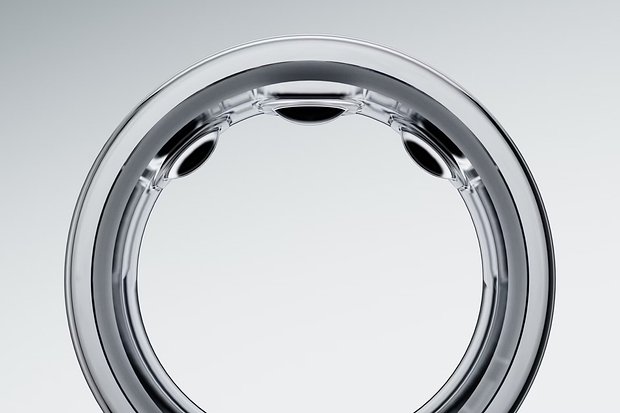 Внешне оно почти неотличимо от обычного кольца: никаких логотипов, только небольшая тактильная метка, подсказывающая правильное положение на пальце. Чтобы датчики корректно прилегали к пальцу, они должны находиться на внутренней стороне пальца. Рекомендовано носить его на указательном пальце нерабочей руки, но и на среднем с безымянным проблем со считыванием данных не возникает.
