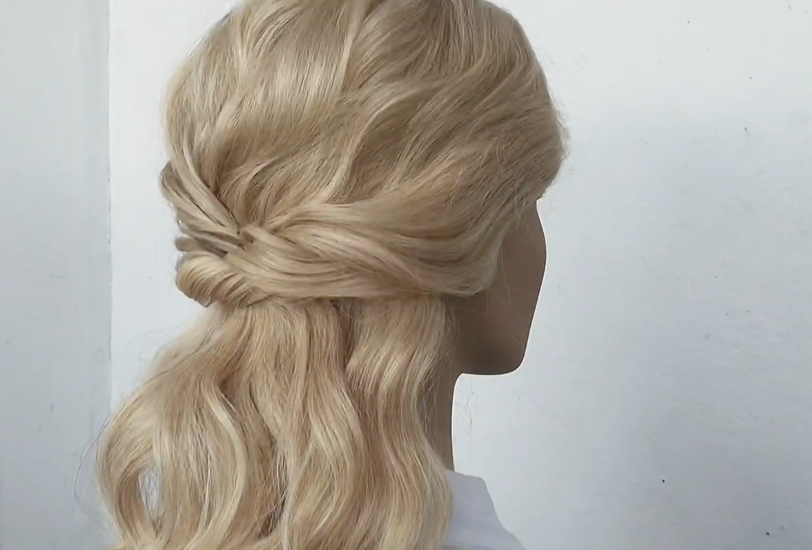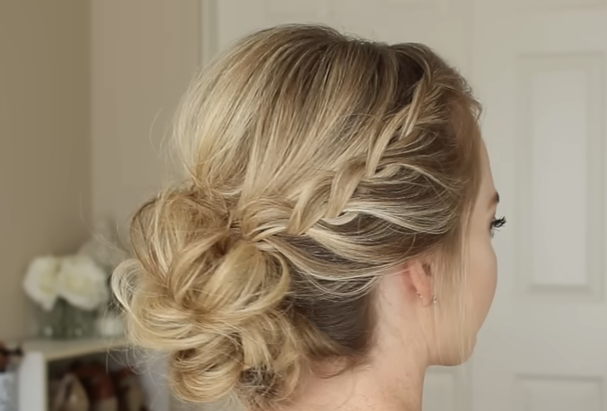 - Скрутите в свободный пучок и закрепите шпильками, вытянув несколько прядей у лица для создания эффекта небрежности.