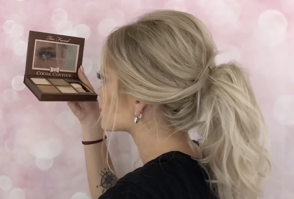 - Соберите волосы на затылке в высокий хвост и завяжите резинкой.