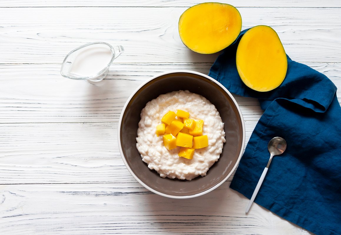 Вкус обычной каши можно сделать интереснее, добавив тропическое манго. Сварите рис заранее, чтобы сэкономить время утром.