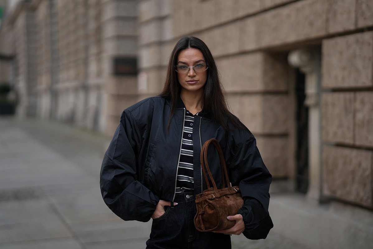 Объемные куртки-бомберы — практичный и наименее вызывающий тренд из 2000-х, который легко вписывается в современный гардероб. Свободный крой таких курток хорошо смотрится на контрасте с облегающими вещами.