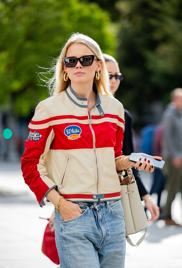 Еще один «привет» из 2000-х — короткие облегающие кожаные куртки с нашивками и принтами гоночной тематики. Сегодня такая вещь будет смотреться особенно актуально с короткой юбкой и кроп-топом.