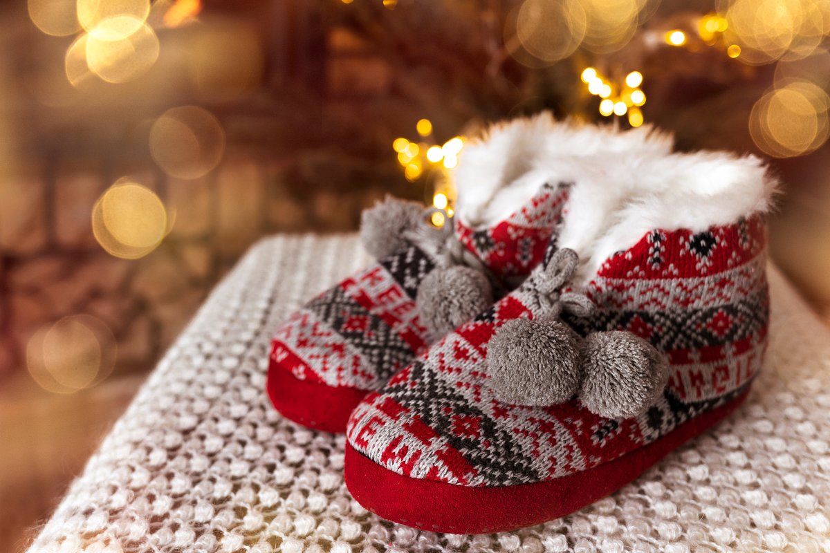 - тапочки для дома: новогодние (в виде оленей), просто милые (в виде котиков) или стильные с искусственным мехом;