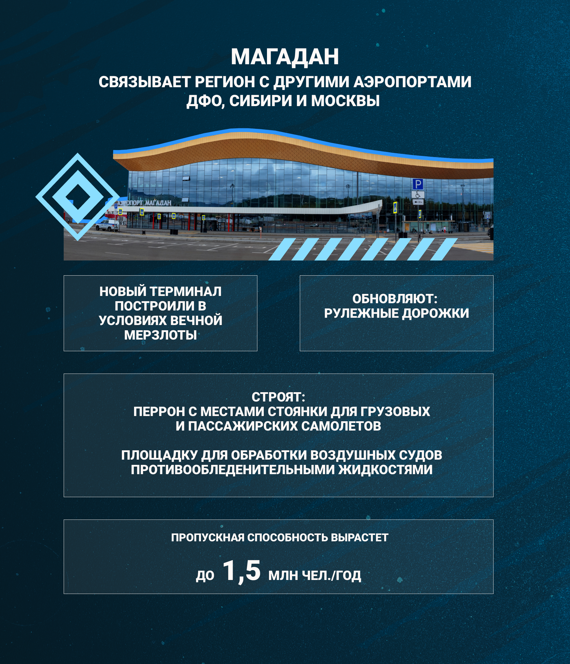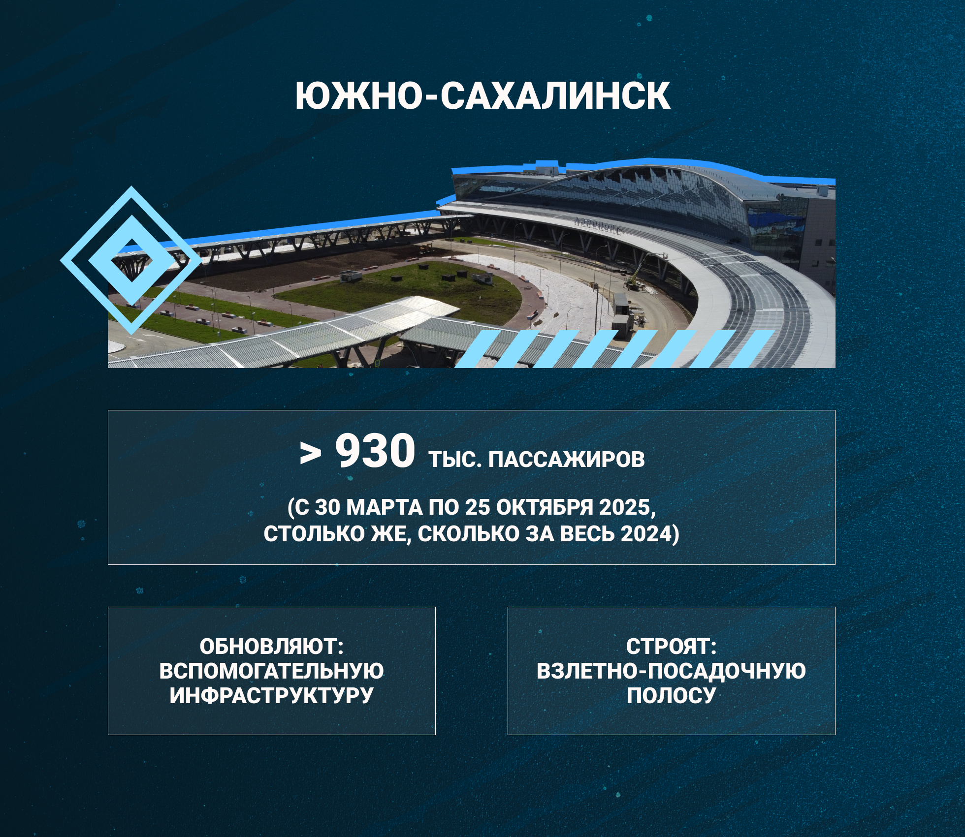 Не менее важную роль для Дальнего Востока играет модернизация аэропорта Южно-Сахалинска. Так как это островной регион, Сахалинская область становится доступнее именно благодаря воздушным перевозкам.