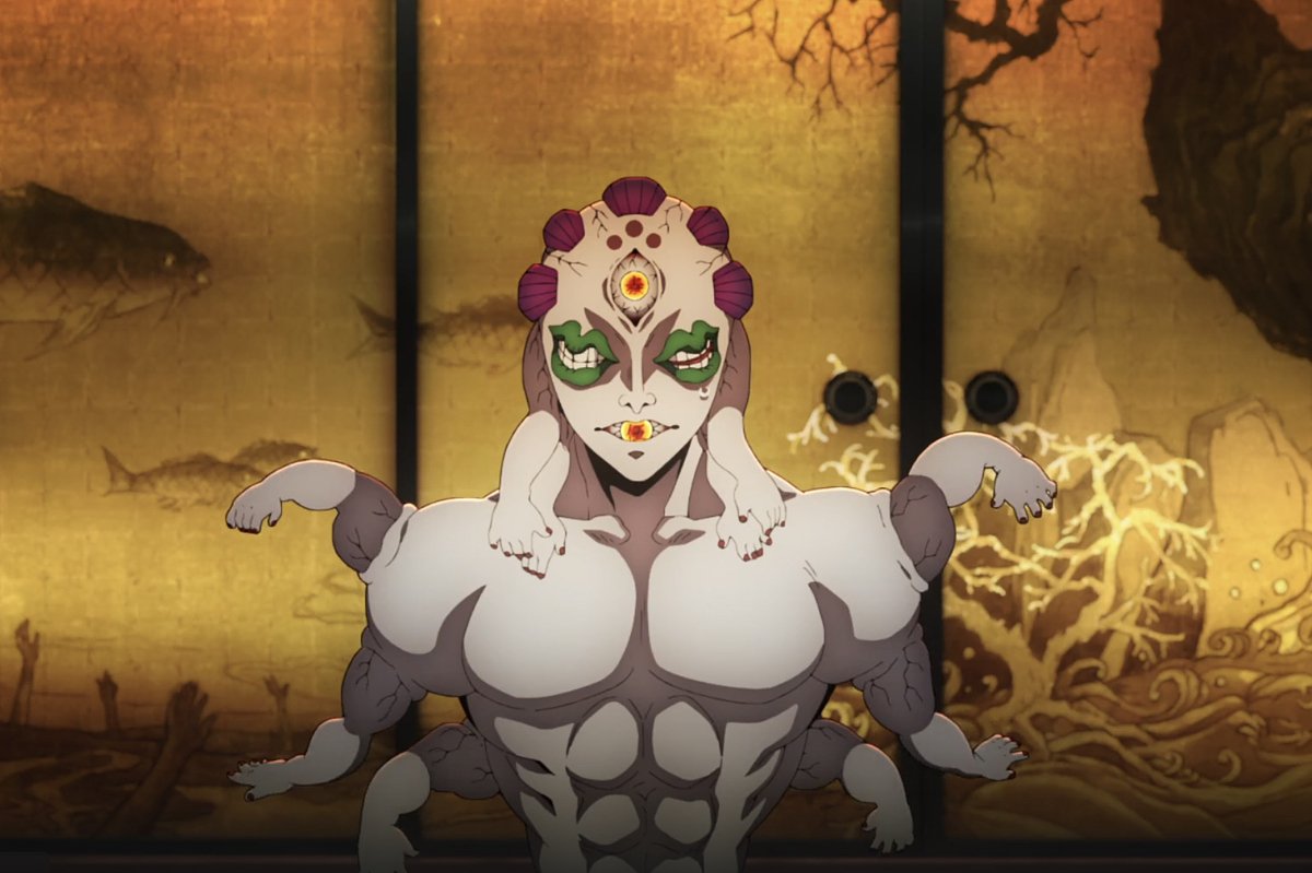 Обессиленные Тандзиро и Гию теряют сознание, а архитектура крепости меняется, чтобы сбить истребителей с толку. Мудзан тем временем держит Тамае в коконе из собственной плоти и клянется, что победит мечников.