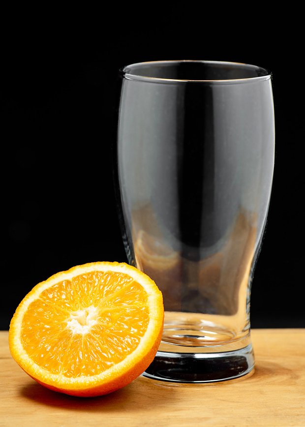 - Дополнительно протрите край бокала оранжевой стороной цедры.