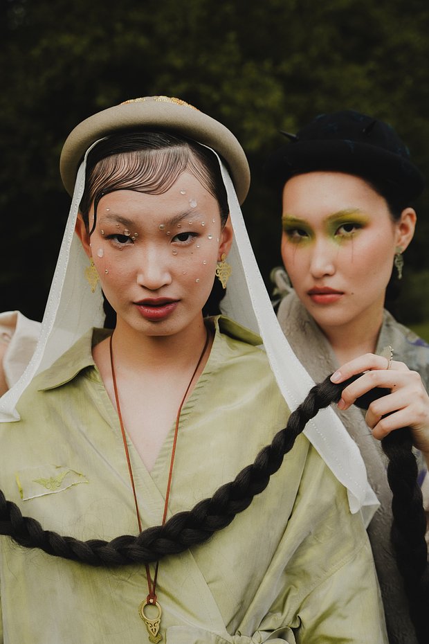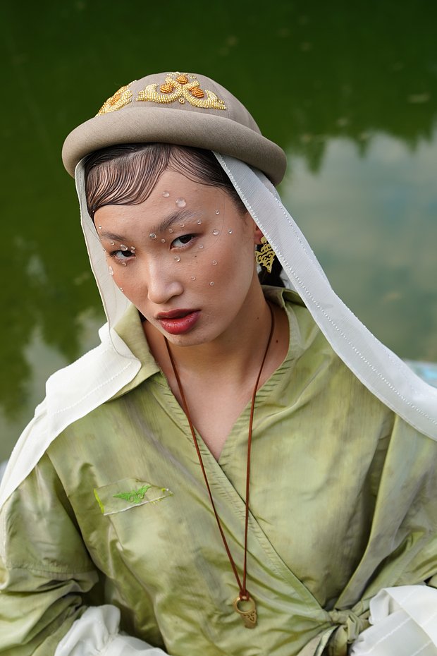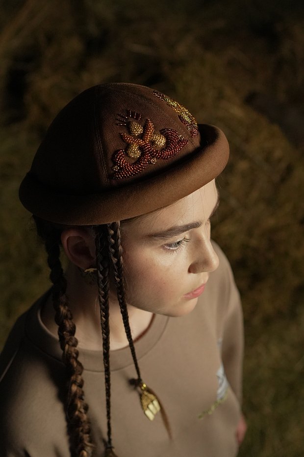 Мне всегда нравилась форма шапки докера. Графичная, плотно сидящая по голове, как будто вырезанная по макушке. Я увидела, как она может соединиться с формой татарской тюбетейки, и добавила к ней текстиль, орнамент, национальную вышивку. Тогда такого сочетания я нигде не встречала. Сейчас этот образ стал узнаваемым, но для меня он остается очень личным: в нем сливаются городская энергия и культурная память