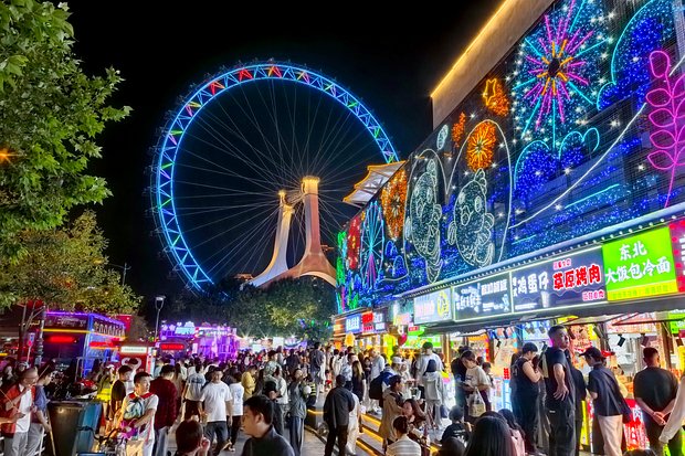 Пешеходную улицу древней культуры стоит посетить для погружения в атмосферу традиционного Китая. Она воссоздает облик старинного китайского города с его характерной архитектурой династии Цин. Здесь открыто множество лавочек, торгующих сувенирами, каллиграфией, предметами народного искусства, а также чайные дома и рестораны, где можно попробовать местные деликатесы. Особая фишка — человекообразные роботы в национальной одежде, которых не отличишь от людей. Они довольно приветливы — улыбаются, танцуют, выполняют несложные работы. Только глаза при этом холодные и пустые.