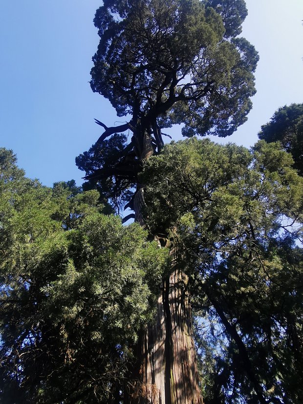 То, что это очень древнее место, заметно и по обрамляющим дорогу к храму кипарисам. Мощные деревья с причудливо узловатыми стволами растут не один век и впечатляют не меньше, чем сам храм. Среди них одно обнесено каменной оградой, а стоящая рядом каменная плита сообщает: «Кипарис, собственноручно посаженный учителем Куном». Неужели правда?