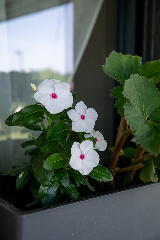 Сразу отмечу важный момент: катарантус ядовит. Все работы — будь то пересадка, обрезка или прищипка — необходимо проводить в перчатках. Также очень важно размещать растение в недоступном для детей и домашних животных месте