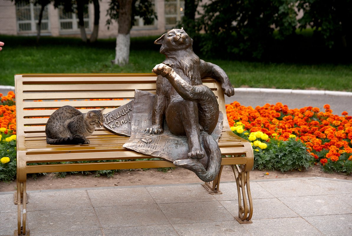 «Йошкин кот» — это бронзовый памятник весом в 150 килограммов, стоящий в сквере Марийского государственного университета. Кот вальяжно расселся на скамейке, рядом с ним газета и обглоданная рыбья кость. Авторы композиции — художники Сергей Яндубаев, Анатолий Ширнин и Алексей Шилов, а установлена она на средства мецената Сергея Парамонова.