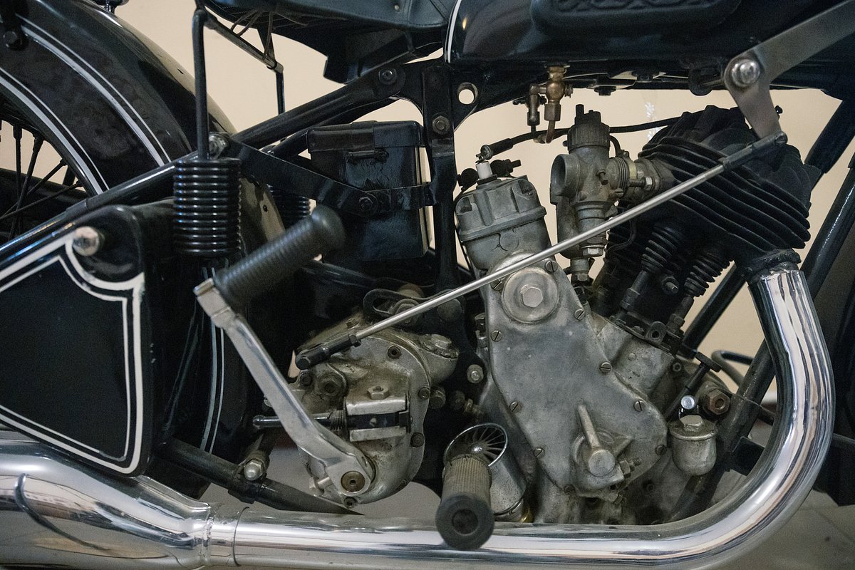 Здесь же стоит самый старый мотоцикл коллекции — британский BSA Sloper 1928 года. Почти сто лет назад советское правительство закупило 50 таких мотоциклов в Бирмингеме.