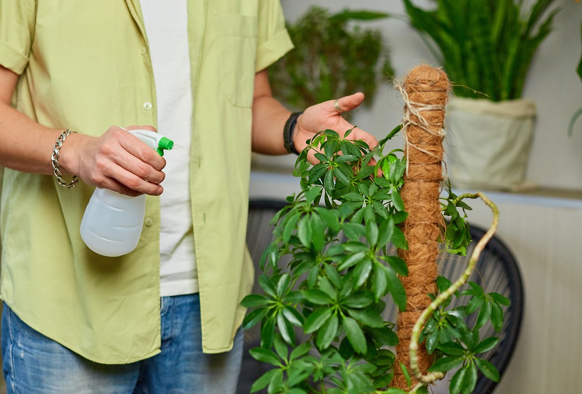 Шеффлера любит высокую влажность воздуха. Регулярное опрыскивание — обязательная процедура, особенно в отопительный сезон