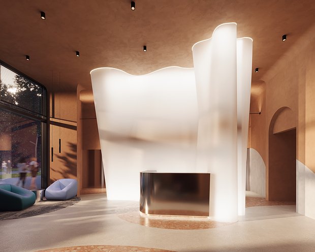 Дизайнерские лобби задают настроение с первых секунд, погружая в атмосферу комфорта и умиротворения. Неповторимый интерьер, который эффектно контрастирует с элементами фасадов, создают отделка в цветах природной палитры, округлые арки, бионические природные формы и металлические поверхности.