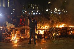 4 октября в Грузии после выборов в органы местного самоуправления началась новая волна массового протеста. Демонстранты сначала вышли на улицы Тбилиси. К вечеру некоторые из участников протеста подошли к президентскому дворцу и попытались взять его штурмом