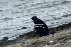 На снятых очевидцем кардах видно женщину, которая разожгла небольшой костер на городском пляже. Все тело женщины за исключением лица и кистей рук покрыто черным балахоном.