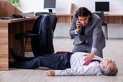 До приезда скорой помощи человека надо уложить в безопасное положение: если он в сознании — на спину с приподнятой головой, если нет — на бок, чтобы он не захлебнулся при рвоте. Также следует расстегнуть воротник, обеспечить доступ воздуха, постоянно контролировать дыхание и пульс.