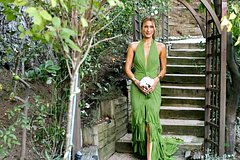 29-летняя супермодель выбрала для торжественной церемонии зеленое платье с V-образным декольте и оборками на юбке. Однако на размещенных кадрах видно, что знаменитость решила отказаться от бюстгальтера и обуви. В то же время звезда дополнила свой образ массивными широкими браслетами и нюдовым макияжем.