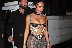 За вечер Кардашьян сменила два образа. Так, в начале мероприятия предпринимательница предстала перед гостями в прозрачном корсете и шелковой ультракороткой юбке. В середине вечеринки она переоделась и продемонстрировала фигуру в капроновых колготках, поверх которых она надела черные трусы и прозрачное мини-платье. На размещенных кадрах видно, что изделие оформлено частично оголяющими грудь вязаными чашками и украшено черными сияющими стразами.
