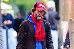 Папарацци сняли 61-летнего артиста на прогулке в Нью-Йорке. Он предстал перед камерой в коричневом пиджаке, синей толстовке на молнии и черных джинсах. Также звезда фильмов «Матрица» и «Джон Уик» надел потертые коричневые ботинки и красную бейсболку, в тон которой повязал шарф и взял с собой шопер. При этом он продемонстрировал отросшие седые волосы и бороду с усами.