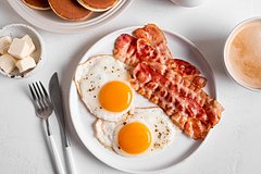 Самым вредным вариантом первого приема пищи Кузнецов назвал тот, в котором присутствуют три-четыре источника жиров. В качестве примера он привел яичницу с беконом или другими мясными изделиями, поджаренными на масле.