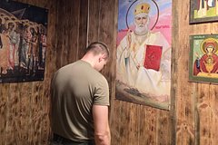 Судя по снимку, военный запечатлен в часовне, где на стенах размещены и другие, уже канонические иконы. Исходила ли инициатива по изображению святого с танками от священнослужителей или от самих военных, неизвестно. Является ли икона освященной, не уточняется.