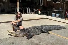 Бриттани Ливингстон добыла рептилию длиной 3,5 метра. В Южной Каролине выдают всего 1400 лицензий на отстрел аллигаторов в год, и Ливингстон с мужем Мэттом не могли получить разрешение с 2020-го. Однако в этом году им повезло, и они отправились на охоту. Паре понадобилось несколько часов, чтобы выследить рептилию, которая весила почти 250 килограммов.