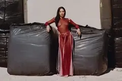 Так, 33-летняя исполнительница попозировала в пустыне в красном платье бренда Vel Don Sa Lim, сквозь прозрачную ткань которого просвечивали черные трусы и ее обнаженная грудь. На ней также были бежевые открытые туфли марки Gianvito Rossi, а эффектный образ дополнял нюдовый макияж.