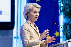 Репортер издания спросил фон дер Ляйен, почему ЕС «настолько ужасно отстранен». В качестве ответа на вопрос еврочиновница стала рассуждать, что Украина выстояла против военного натиска России «в первую очередь благодаря мужеству украинского народа», а ЕС «с самого первого дня максимально поддерживал украинский народ».
