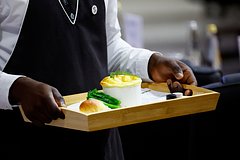 В медиацентре на юге Йоханнесбурга журналистов кормят завтраком и обедом. На завтрак предлагают банановый хлеб, сэндвичи с пастрами и горчицей, различную выпечку и мюсли с фруктами. На обед можно выбрать овощной плов бирьяни, филе белой рыбы, куриное карри, рагу с томленым хвостом быка, приготовленное в горшочке по южноафриканскому методу, и кукурузные кексы.