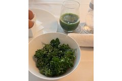 44-летняя знаменитость продемонстрировала накрытый стол, на котором оказались три вареных яйца в скорлупе, зелень в салатнике и смузи в стакане. При этом она отметила, что в настоящее время пытается сбросить вес.