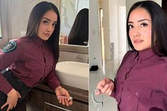 В руки коллег 20-летней Николь Габриэлы Верон попали видео, на которых она слишком раскованно ведет себя в полицейской форме. Например, в одном ролике она крутит перед камерой наручники, в другом — стоит перед зеркалом в одном боди, имитирующем униформу, и подтяжках, похожих на портупею.