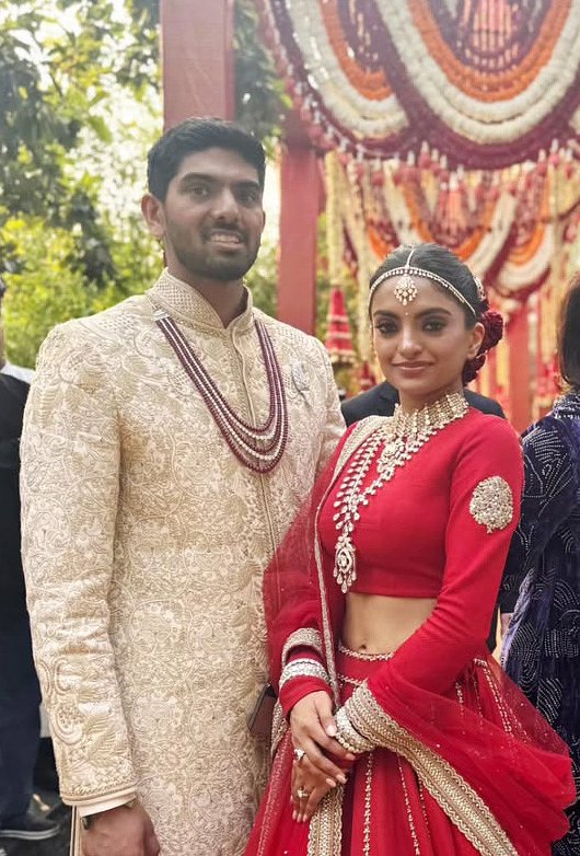 Отец невесты, Рама Раджу Мантена, — влиятельная фигура в фармацевтическом секторе США. Бизнесмен стал председателем совета директоров и генеральным директором компании Ingenus Pharmaceuticals, которая владеет производственными и научно-исследовательскими центрами в США, Швейцарии и Индии. Мантена основал несколько международных компаний в сфере здравоохранения, включая ICORE Healthcare, Ingenious Pharmaceuticals и OncoScripts.