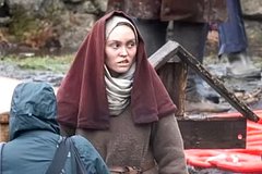 26-летняя звезда «Носферату» предстала перед камерами папарацци в бесформенном коричневом платье, а также в сером и бордовом платке. На размещенных кадрах видно, что гримеры нарисовали под ее глазами темные круги и шрам над губой.