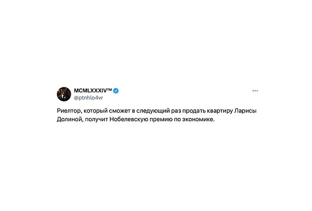 Поиронизировали в сети и над основанием, по которому суд вернул квартиру певице: как отмечалось в тексте решения суда, Долина в момент продажи недвижимости не была способна понимать значение своих действий и руководить ими.