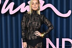 Папарацци запечатлели 50-летнюю знаменитость на ежегодной церемонии вручения наград Fashion Awards в черном прозрачном платье, сквозь которое просвечивалось нижнее белье. Помимо этого, звезда надела черные остроносые туфли, а в руках она держала золотистый клатч.