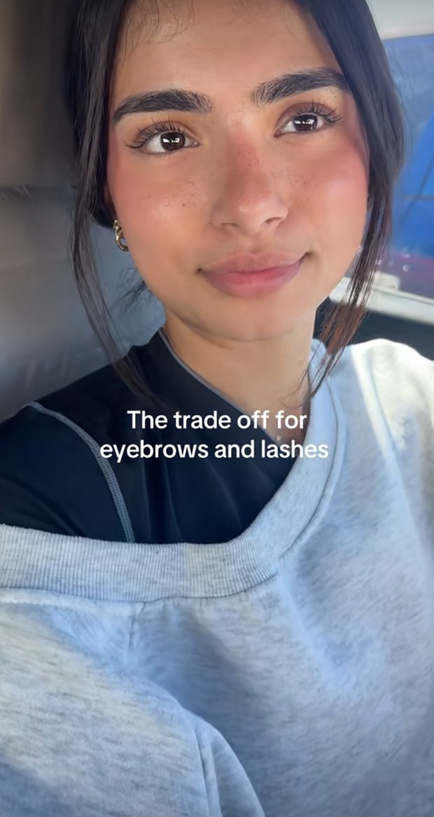 Девушка запечатлела себя, когда сидела в автомобиле. Она позировала в черной футболке и сером свитшоте, уложив пряди в низкий пучок. При этом автор поста показала крупным планом шею и подбородок со щетиной.
