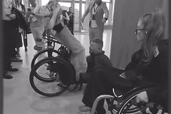 Во время съемок Анпилогова предложила Лебедеву повторить некоторые приемы езды на инвалидной коляске и поставить ее на задние колеса. Первая попытка Лебедева совершить действие оказалось удачной, однако, когда дизайнер попытался повторить прием, он упал. «Мы уронили Артемия Лебедева», — подписала ролик блогерша.