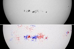 Уточняется, что даже несмотря на рекордные площади и «угрожающую» магнитную классификацию, а также на то, что математические модели ежедневно дают практически 100-процентную вероятность вспышек, ни одной вспышки класса M (средней величины) или X (высокой величины) за последние пять дней зарегистрировано не было.