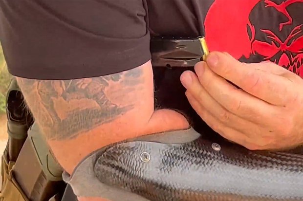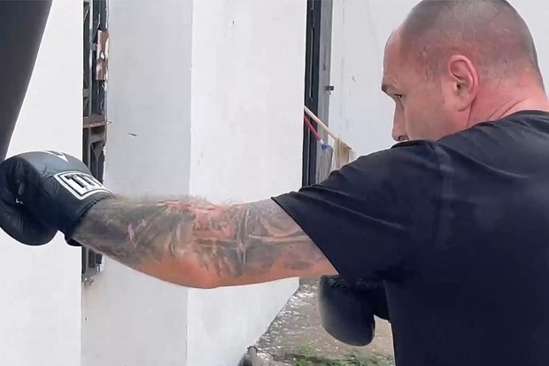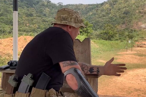 Также на левом предплечье видна свежая, еще черная татуировка, изображающая шлем викинга в окружении двух топоров и подпись «убейте их всех ***» по кругу. Похожее изображение можно найти и на шевронах вагнеровцев. Под шлемом есть цифра пять — номер штурмового отряда, которым командовал Подольский во время боев за Артемовск в 2023 году.